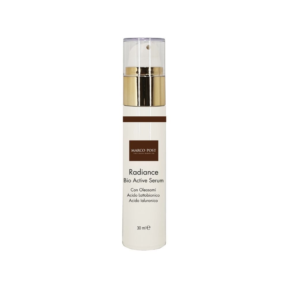 Radiance crema contiene, acqua floreale di fiordaliso, acido lattobionico, glicolico e ialuronico, olio di ciliegio, Vitamina E e ExoVitalize, formulato con estratti di pompelmo e anguria incapsulati in un sistema esosomiale naturale.
